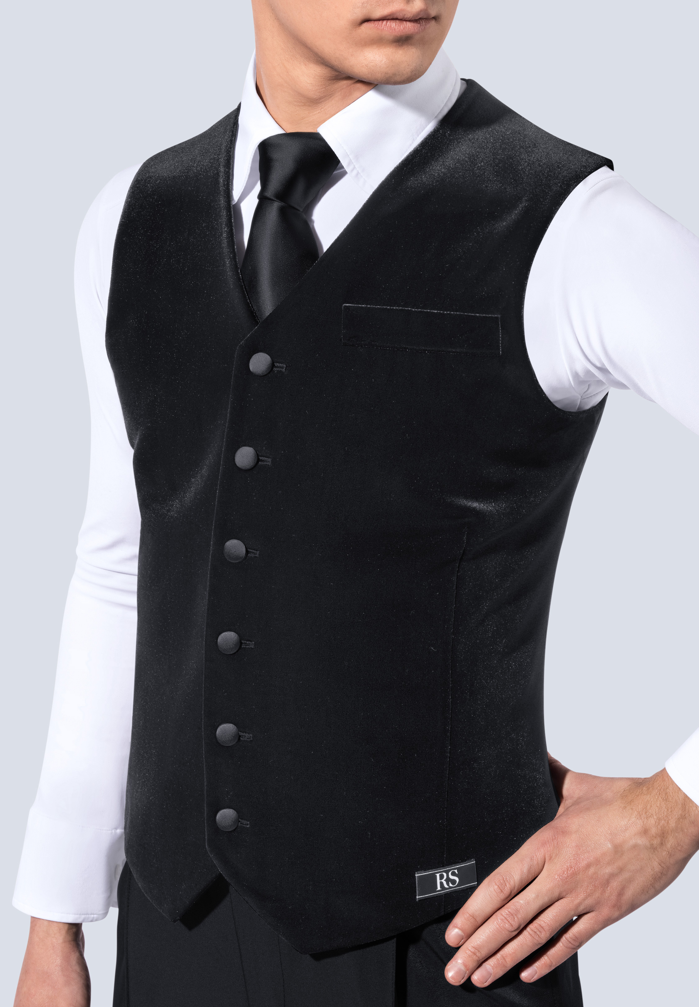 イタリアRS製のメンズベロアベストです。着るだけで男性の美しいボディラインが見える、素晴らしいメンズベロアベストです。色はブラック。※各サイズは「胸囲」です。