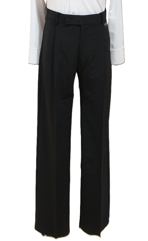 DANCE WAVE 加地卓先生プロデュース! 金具の見えないアジャスターを搭載し、ウエストが伸び縮みするのが特徴のダンスパンツ。もちろんベルトループも付いていますのでベルトの着用も可能です。今流行りのッタクが深めなデザインでスタンダードダンサーの動きにも対応。競技、パーティー、練習と、着用シーンを選びません。